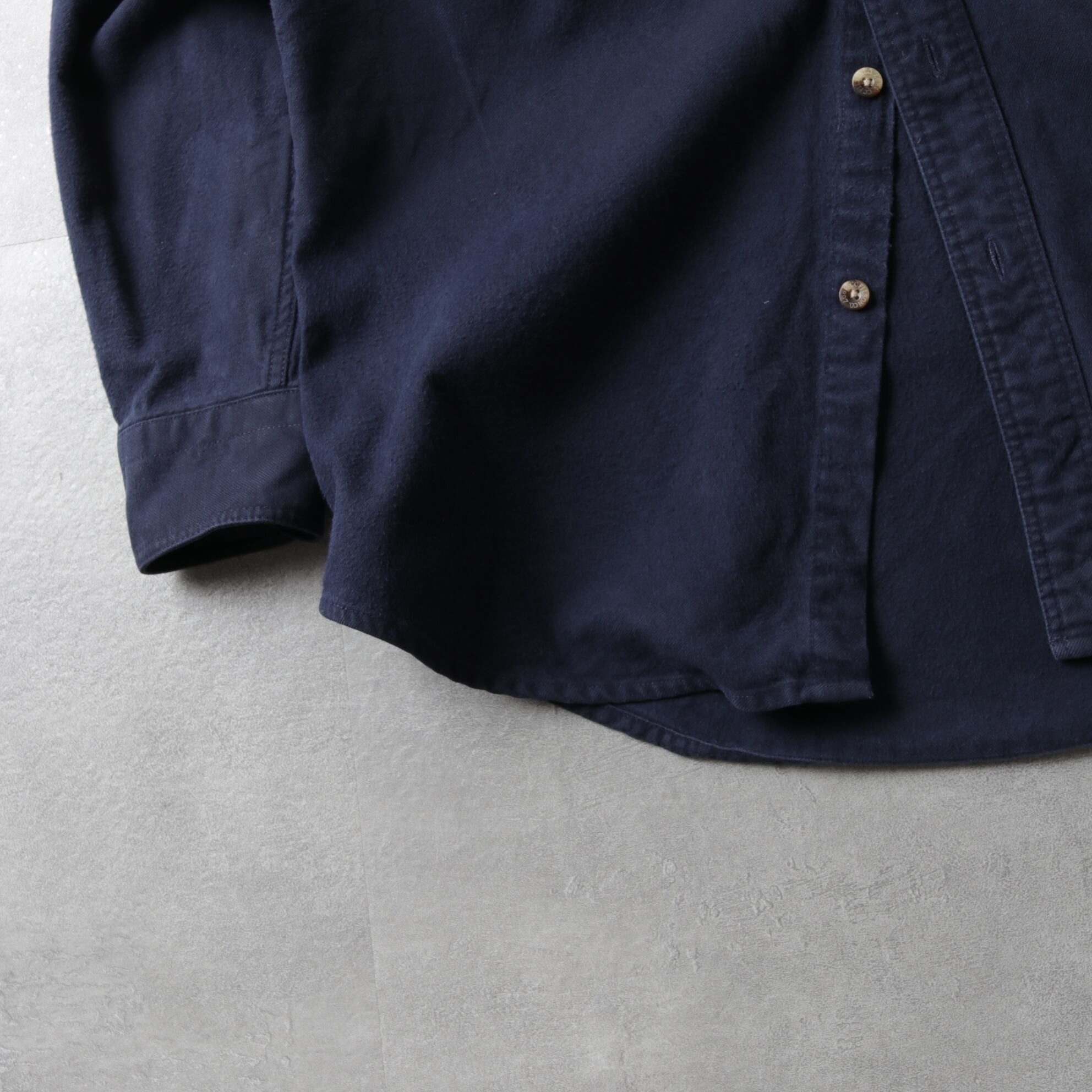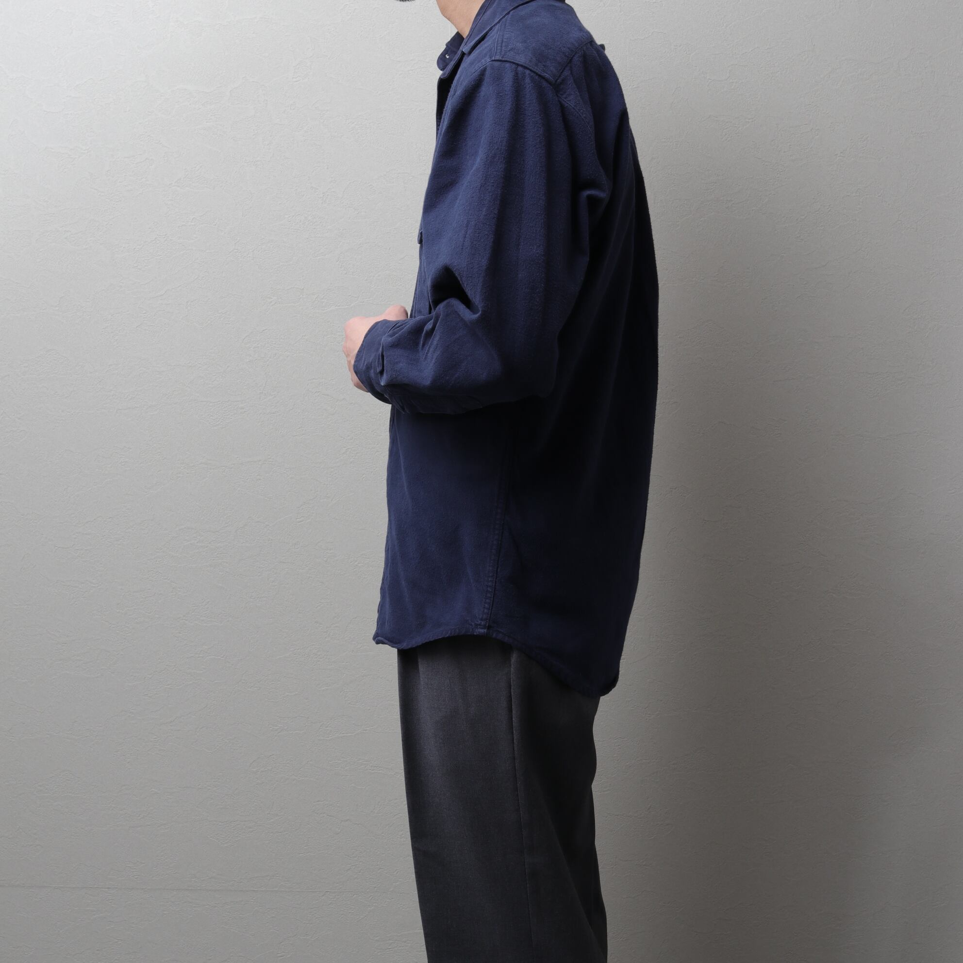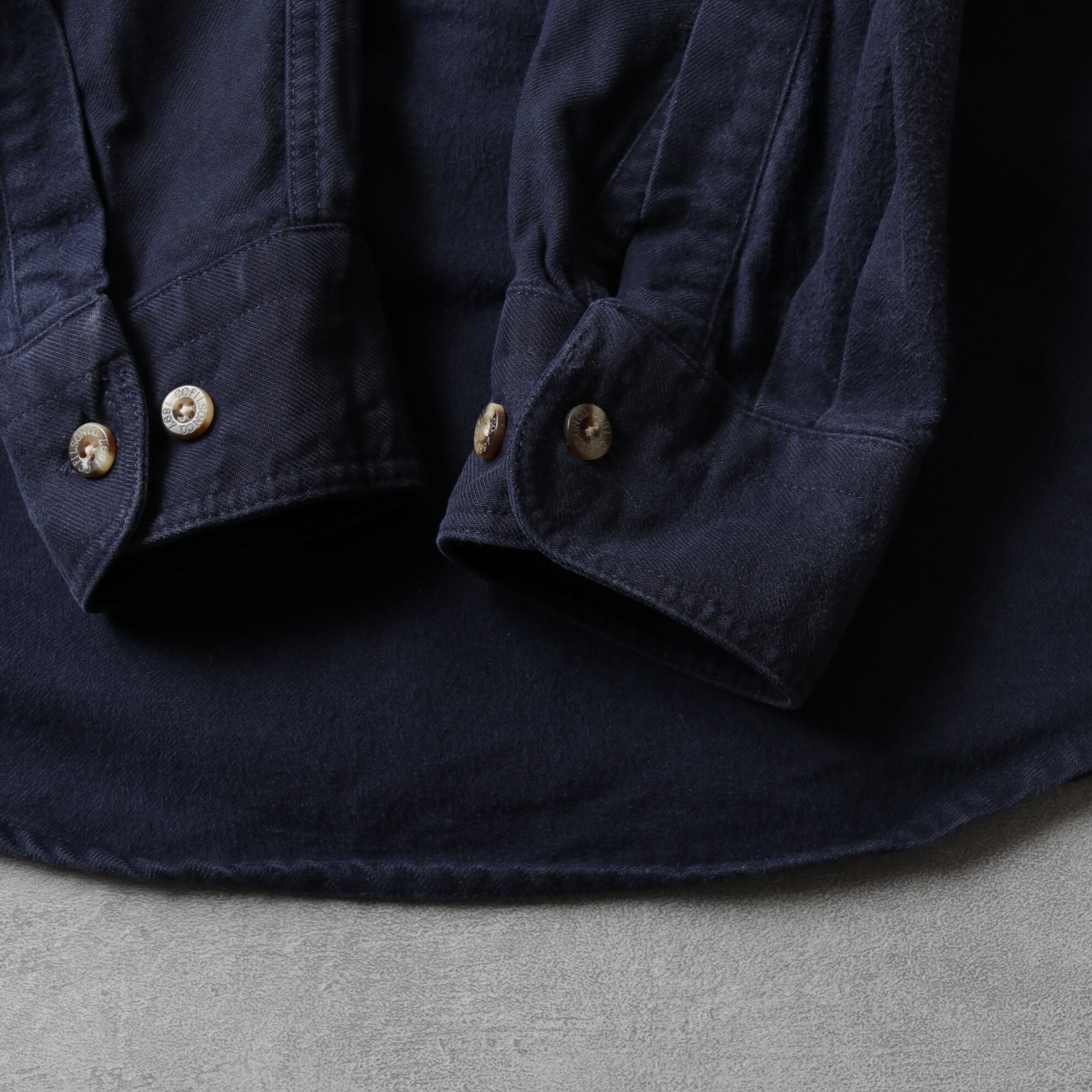 FILSON(フィルソン)より、ネイビーのシャモアクロスシャツ。